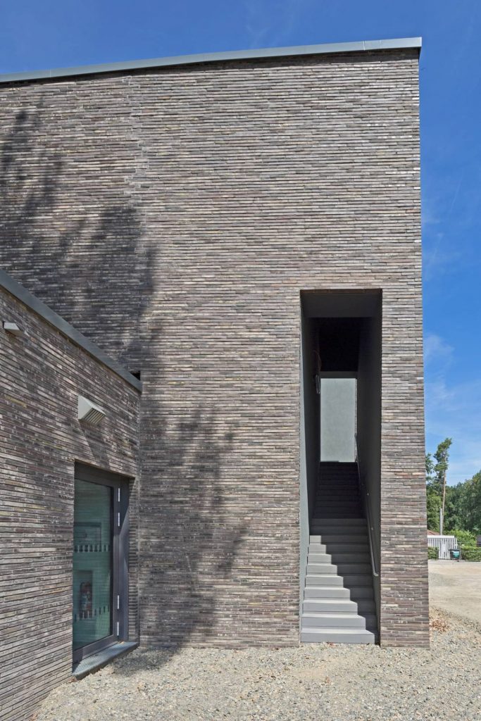 Ein gegenläufiges Flachdachgefälle unterstreicht den jeweils eigenen Charakter der sich ergänzenden Bauteile.